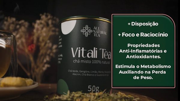 Vitali Tea, Chá energizante com propriedade estimulante, aumenta a disposição para atividades física, estimula o metabolismo e ajuda na perda de peso.